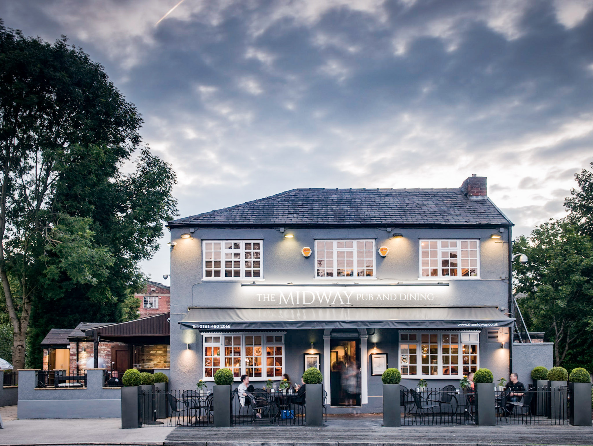 The award-winning Midway is a well established Bar and Restaurant very popular with locals and visitors alike being conveniently located just off J27 of the M60 motorway. Smartly painted and immaculately clean, the exterior has attractive bow shaped windows, potted plants and a canopied entrance. The spacious bar and separate eating area within are contemporary, stylish and comfortable creating a relaxed and welcoming atmosphere throughout. To the rear is a delightful beer garden, the ideal spot to dine al fresco or simply unwind with a drink in the warmer months. A private function room is also available for meetings or that very special occasion.